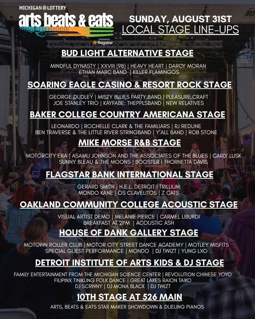 Michigan Lottery Arts, Beats & Eats 2025 Line Up on the Detroit Institute of Arts (DIA) Kids Stage includes Great Lakes Taiko Center - Raion Taiko on Sunday 8/31 @6:30-7:00pm [also enjoy an interactive performance with our friends in the Sakura Japanese Instrumental Group on Saturday 8/30 @5:30-6:45pm on the Flagstar International Stage]