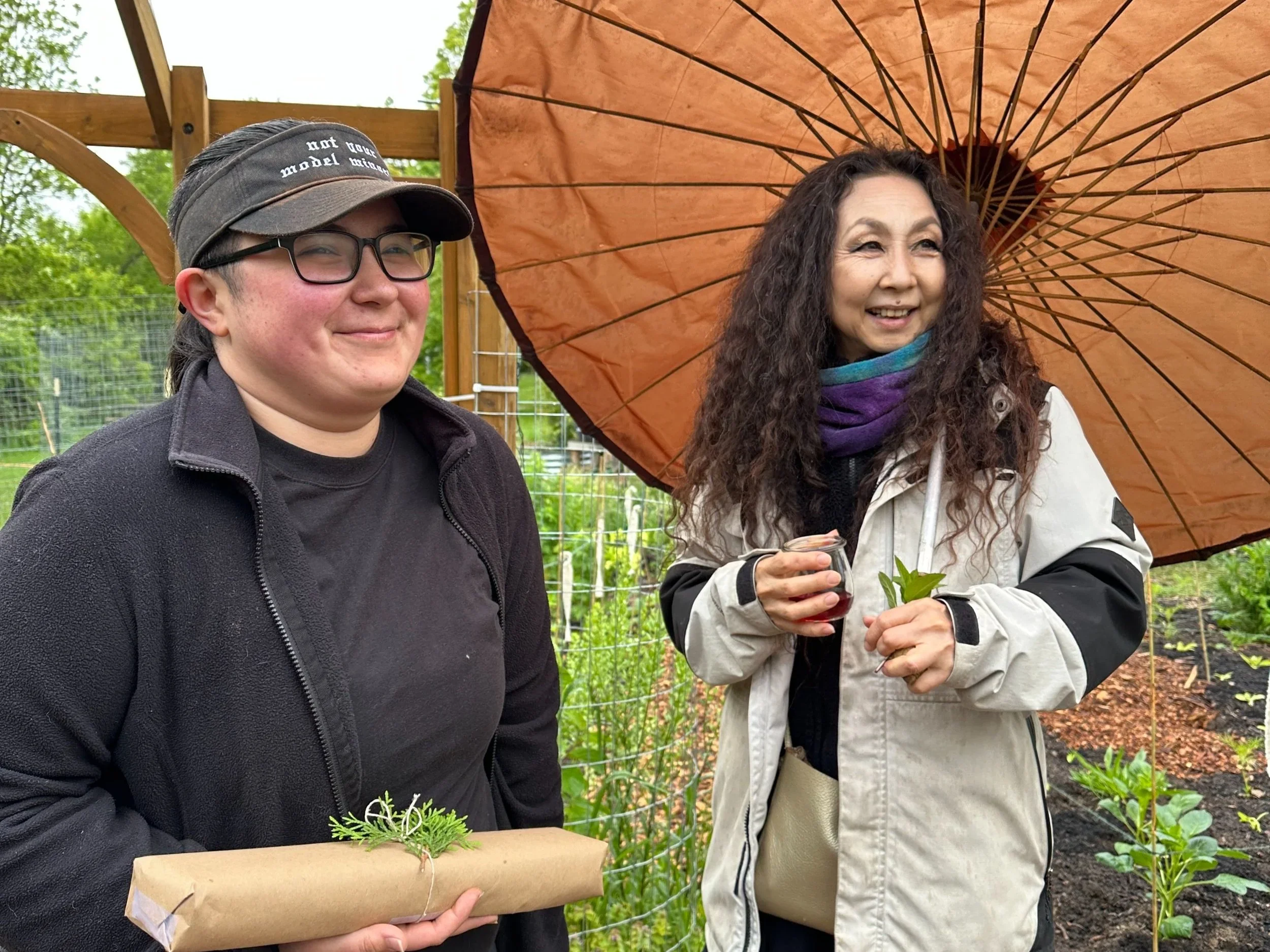 Maro, they/them (founding member of the Community Food Forest), is a graphic designer and website manager. They fastidiously tend to weed tree removal and lend a great deal to the project’s cultural preservation programming. (Maro is also an active GLTC member and Sazanami Taiko Arts ensemble performer. They are pictured here with special guest, cultural emissary and renowned Master Taiko Drummer, Kaoly Asano from Tokyo.)