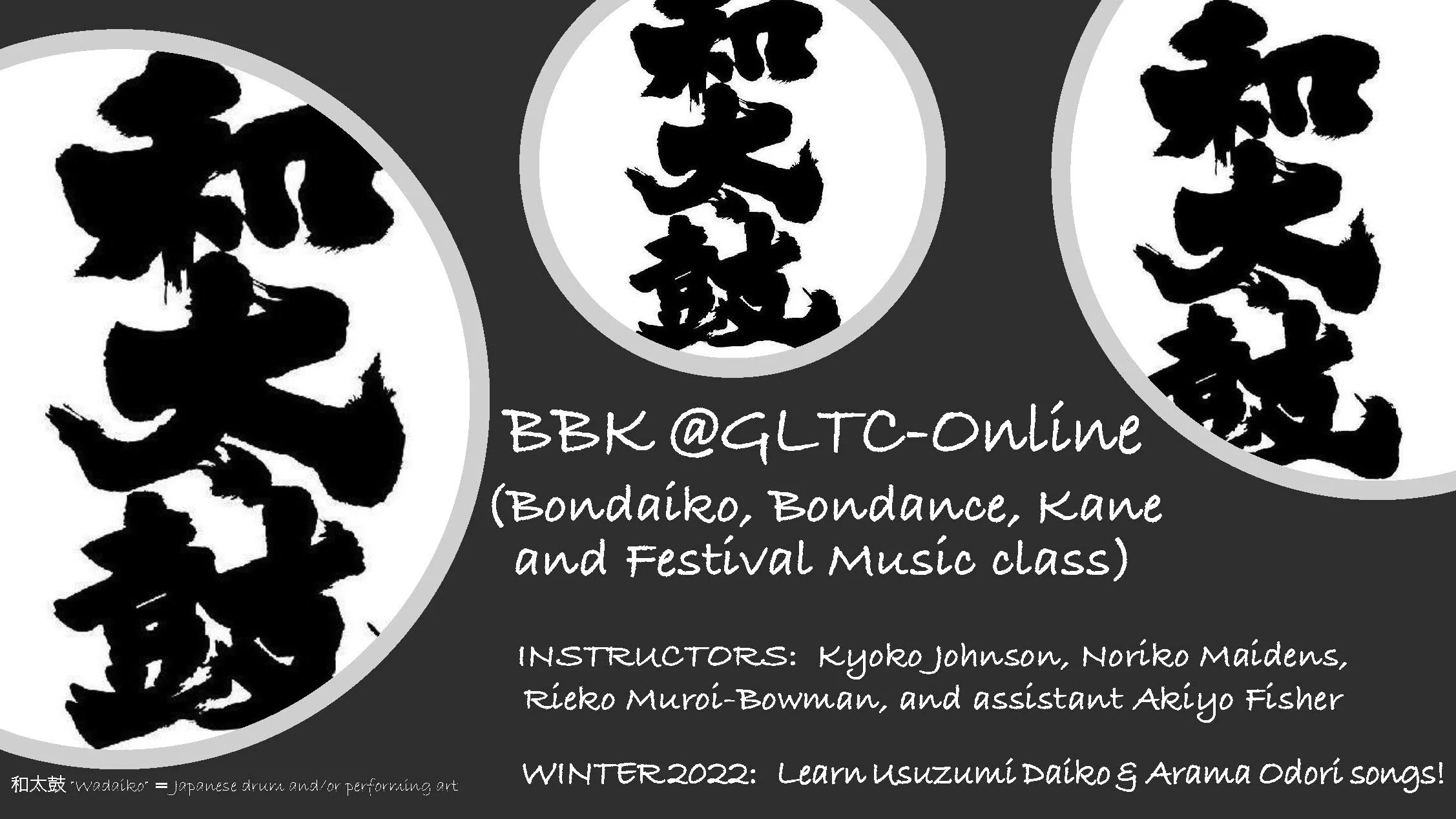 BBK class is back this Winter with more festival music! Go to our Taiko Class Listing page to sign up for this course. And learn more about Winter 2022 BBK from our instructors here…